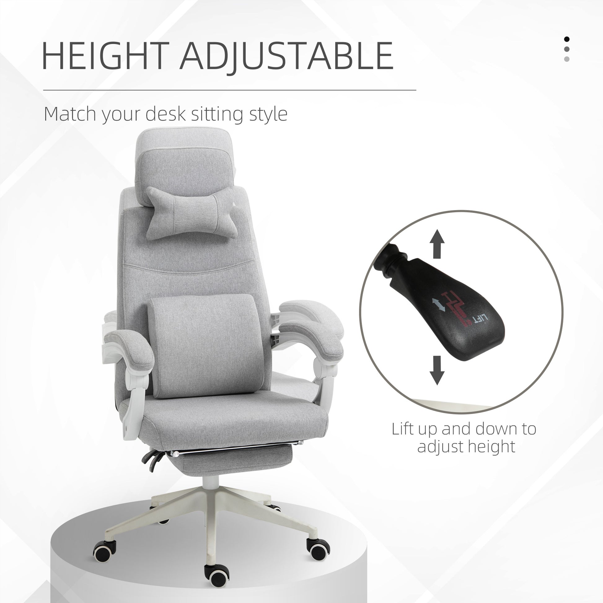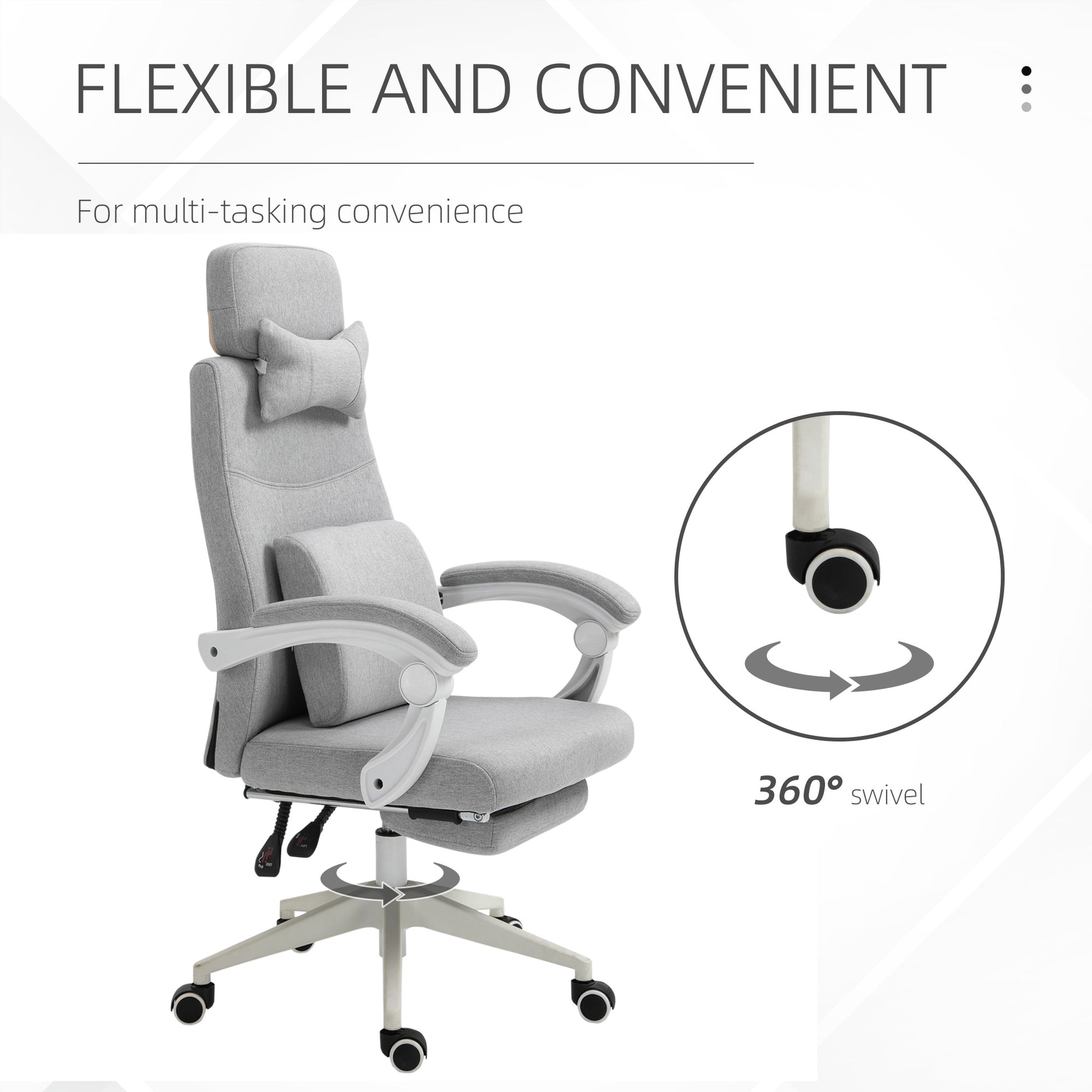 Vinsetto Office Chair, Ergonomic Desk Chair, High Back Fabric Work Chair with 160° Reclining Backrest, Retractable Footrest, Neck and Lumbar Pillow for Home and Study, Grey